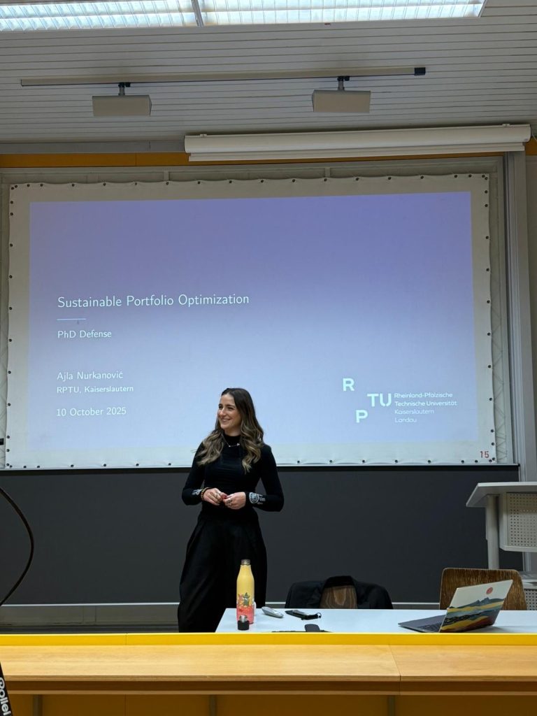 Tuzlanka Ajla Nurkanović doktorirala je na Tehničkom univerzitetu Kajzerslauternu odbranivši svoj rad s najvećim mogućim priznanjem — summa kum laude. Tema njenog doktorata, “Sustainable Portfolio Optimization”, povezuje matematiku, finansije i održivost, tri oblasti koje oblikuju ekonomiju budućnosti. Ajlino istraživanje bavi se pitanjem kako se kroz održive investicije mogu istovremeno rješavati klimatski i penzioni izazovi, a njeni rezultati već privlače pažnju finansijskih institucija i regulatora širom Evrope. Osim što je vrhunska naučnica, Ajla je i volonterka i mentorica BH Futures Foundation, gdje pomaže mladima da razvijaju karijeru u STEM oblastima i povezuju se s globalnim akademskim svijetom.